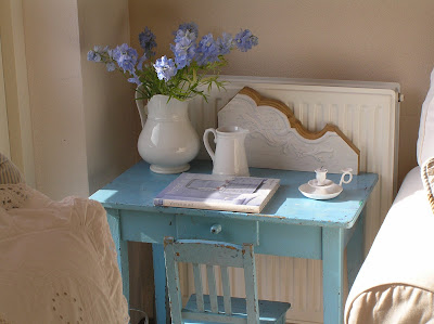 Wishing you a lovely week and a few pictures of my new french little desk and childrens chair in this lovely blue colour..and am still working on a project to cover the last heater ( I really hate those..)